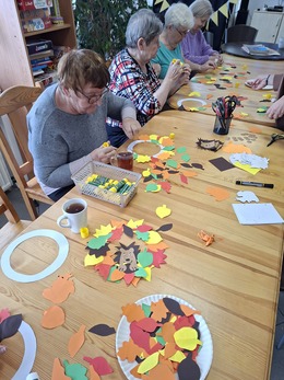 23 września 2025 r. nadszedł czas na jesienne ozdoby. Nasi mieszkańcy przywitali jesień, tworząc wianuszki – wycinali kolorowe liście, obklejali je na kole i ozdabiali je jeżem, wiewiórką oraz grzybkami. Powstała w ten sposób piękna dekoracja na drzwi, wprowadzająca jesienny klimat.