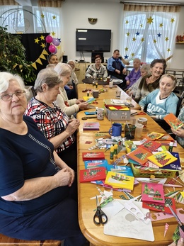 Dnia 02.12.2025r mieszkańcy w ramach zajęć z arteterapii wykonywali Bożonarodzeniowe kartki, które z życzeniami od serca płynącymi trafiły do byłych pracowników Domu Pomocy Społecznej w Kwidzynie oraz zaprzyjaźnionych instytucji. Ten drobny gest Seniorów sprawia ,że nikt nie czuje się samotny , bo o wszystkich pamiętamy.