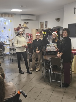 Dnia 15.12.2025r. naszych mieszkańców odwiedzili pracownicy firmy JABIL z Kwidzyna oraz uczniowie Liceum Ogólnokształcącego Mundurowego „Spartakus” w Kwidzynie. Obdarowali naszych mieszkańców własnoręcznie wykonanymi kartkami z życzeniami oraz słodkościami, co sprawiło wielką radość Seniorom. Ten akt życzliwości i dobroczynności w okresie świąt Bożego Narodzenia sprawia , że w sercach naszych mieszkańców na nowo rozpala się iskierka wiary , że ludzie starsi i schorowani nie są zapomniani.