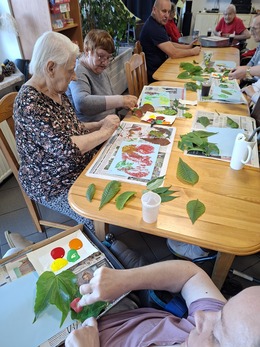 24 września 2025 r. podczas zajęć mieszkańcy malowali liście farbami, a następnie odbijali je na kartce, tworząc barwne i niepowtarzalne kompozycje. Zajęcia pozwoliły na twórczą zabawę kolorami, rozwijanie wyobraźni i sprawności manualnej, a także wprowadziły uczestników w jesienny, kreatywny nastrój.