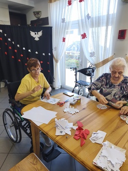 Aby uczcić dzień odzyskania niepodległości przez Polskę przypadający 11listopada, nasi seniorzy w dniu 05.11.2025r wykonywali prace plastyczne, aby dekoracjami w biało-czerwonych barwach uczcić Narodowe Święto Niepodległości.