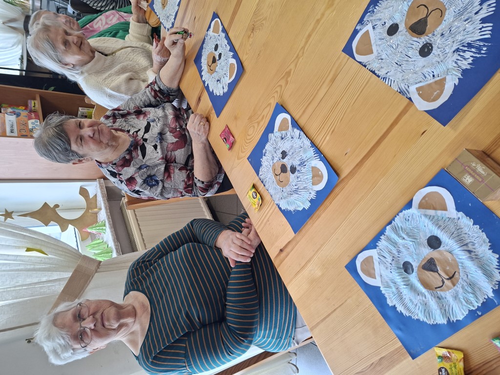 Zima za oknem roztacza białe piękno, a nasi Seniorzy tworzyli w dniu 15.01.2026r białe misie, gdyż to one najbardziej kojarzą się z zimą. Prace stworzone zostały przy użyciu farb, widelca, brokatu co pozwoliło stworzyć na kartce piękne puszyste futerka naszych niedźwiadków. Temat pracy był dla Seniorów zagadką, którą podczas wykonywanych etapów pracy odkrywali stopniowo. W efekcie finalnym wyłonił się biały miś. Wszystkie prace wyszły przepięknie, a powieszone na oddziale cieszą oko naszych mieszkańców.