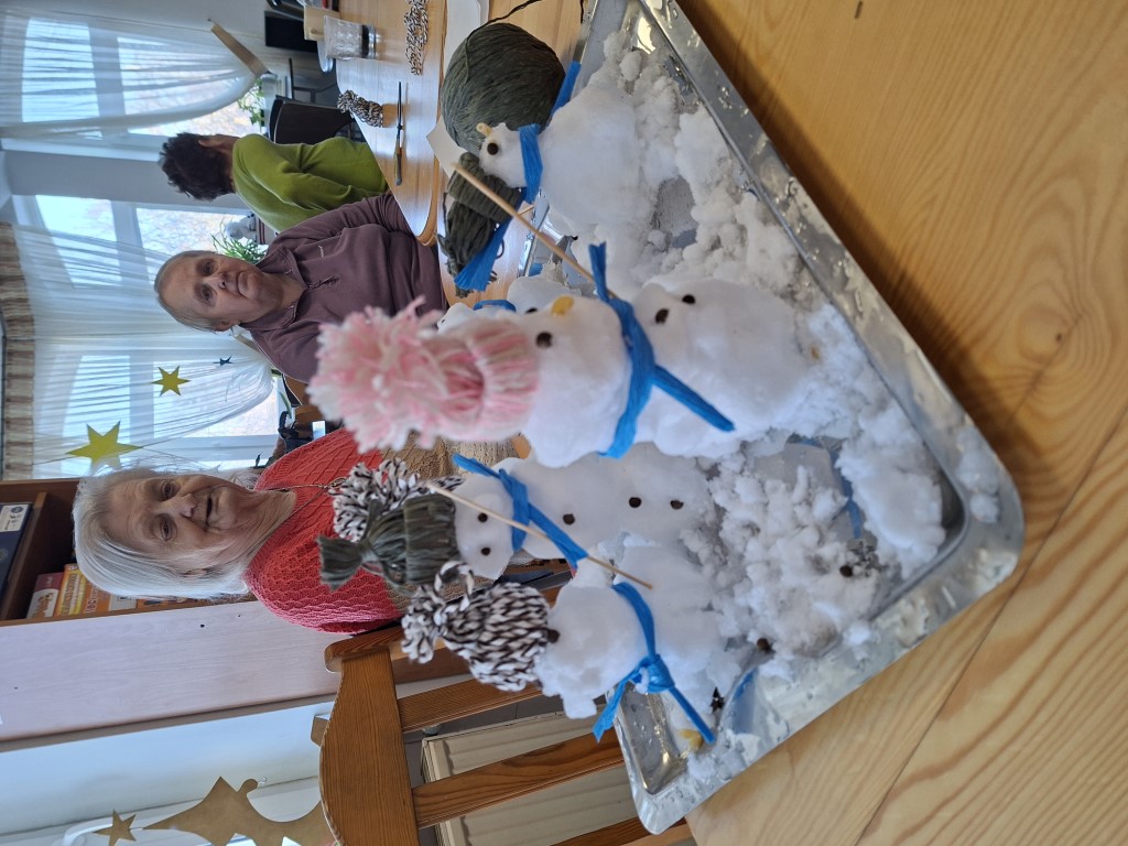 „My się zimy nie boimy i bałwanki ulepimy”- takie hasło przyświecało naszym Seniorom w dniu 19.01.2026r. Tego dnia na zajęcia dostarczono mieszkańcom śnieg , z którego lepili bałwanki. Za guziczki służyły ziarnka pieprzu ,a nos był z makaronu. Bałwanki otrzymały też ręcznie wykonane czapeczki z włóczki. Gotowe prace ustawione zostały na tarasie Domu , by mogły zerkać do nas przez okno.